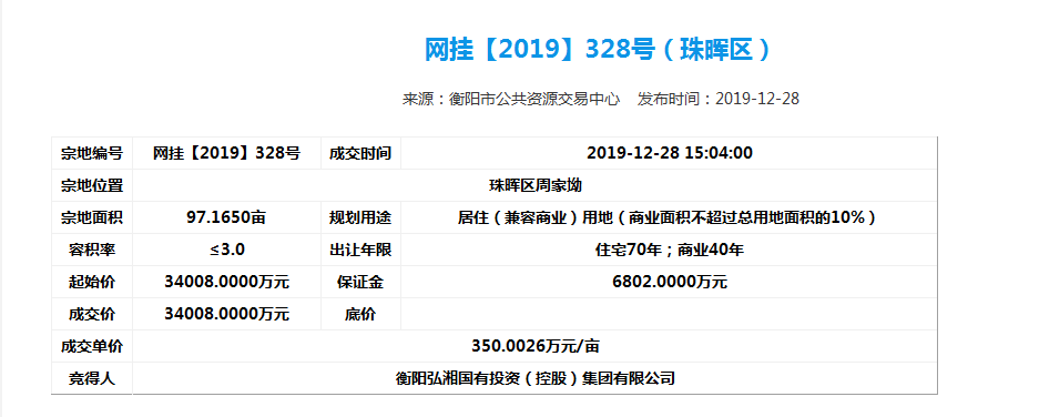 近日,衡陽弘湘國有投資(控股)集團(tuán)有限公司(以下簡稱“弘湘國投”)在市公共資源交易中心網(wǎng)站成功摘牌6宗共計523畝改制企業(yè)土地,摘牌總價超24億元。此舉標(biāo)志著弘湘國投邁出了土地整改、做實資產(chǎn)的又一實質(zhì)性步伐。