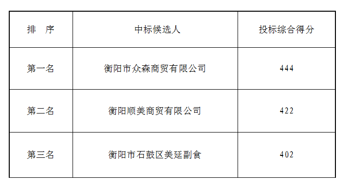 衡陽弘湘食堂食材(干貨類)公開比選候選人公示