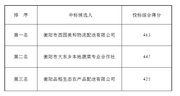 衡陽(yáng)弘湘食堂食材(蔬菜類)公開比選候選人公示