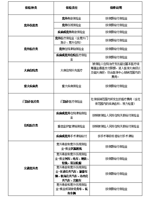 (4)保障內(nèi)容具體如下表: