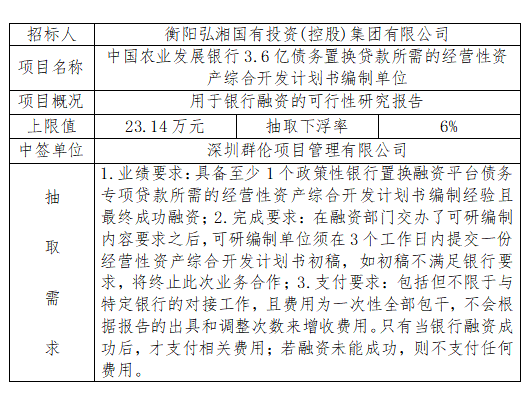 招 標(biāo) 人:衡陽弘湘國有投資(控股)集團(tuán)有限公司